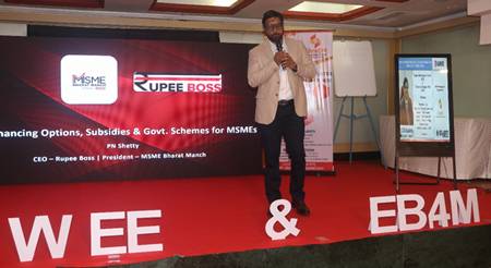Keynote Session on “SME growth through debt” was conducted by Mr. PN SHETTY, CEO of Rupeeboss Financial Services Pvt Ltd and President, MSME Bharat Manch who explained about available Govt subsidies & CGTSME loan.